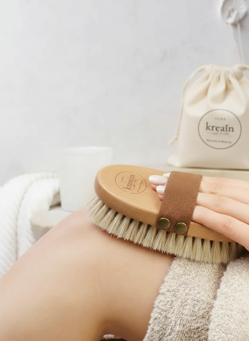 A timeless self-care essential. Crafted with genuine horsehair and a smooth wooden handle, this natural body brush improves circulation, stimulates lymphatic drainage, and leaves your skin feeling silky soft. Whether used dry or in the shower, it gently removes dead skin cells while reviving your natural glow.