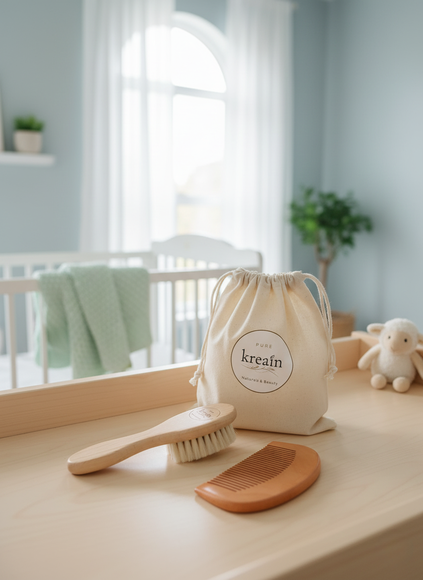 Kreain Naturals Baby Hair Brush & Comb Set – Natural Goat Hair